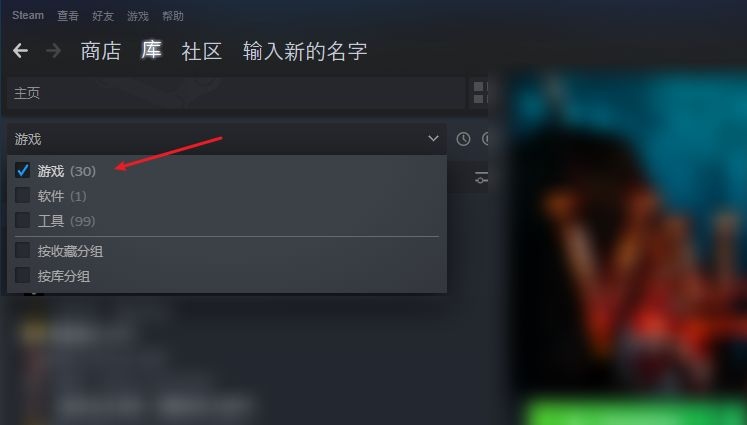 2.在游戏库中,打开游戏和软件选项。