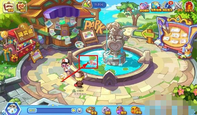 在创意园的喷泉里,点击漂流瓶。