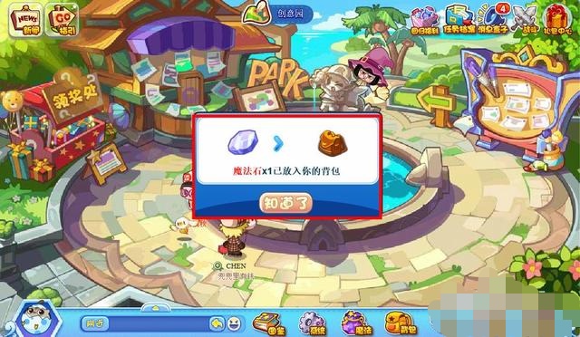 点击精灵留下来的石头,即可获得魔法石1枚。