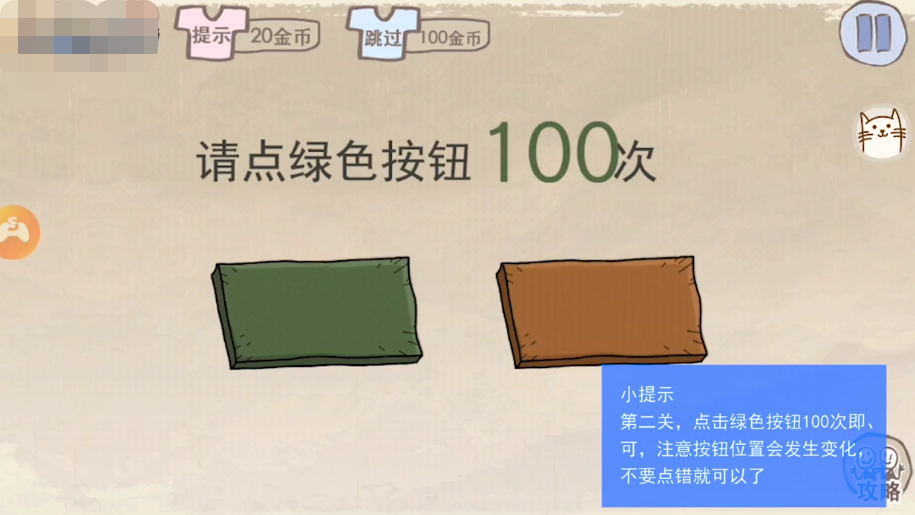 点击“绿色”按钮100次即可,注意按钮位置会发生变化,不要点错就可以了。