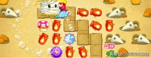 3、炸开之后在中间放一个冰星,然后升级火瓶,接下来把下方的障碍物炸掉。