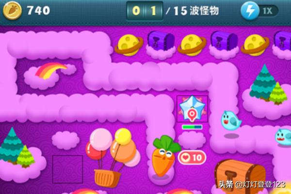 2 在暂停情况下,在方框内放冰星星,并升到顶级,另一个方框内放一个冰星星,升级到二级。顶级冰星星打它下面的云朵,会出来章鱼。二级冰星星配合打前两三波小怪,并升到顶级。