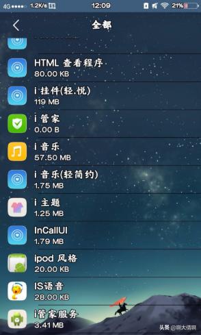 5、打开全部软件,在里面找到i主题,进入i主题应用程序信息选项,注意,关键的步奏来了,依次卸载,清除数据,清除缓存,最后强行停止i主题的运行。
