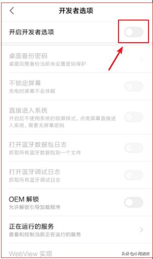 3、在开发者选项页面,打开【开启开发者选项】。