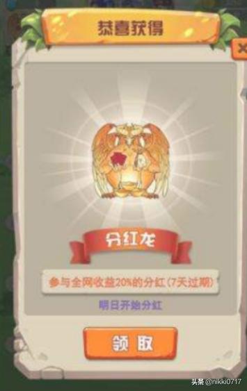 2、其次,现在每天都有分红龙产生,每条的分红是220元,当然了,运气很重要,分红龙又有限时和永久的两种;